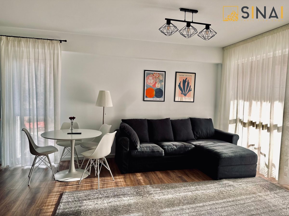 Apartamentul este un spațiu contemporan, amplasat la etajul al IV-lea, care vă captează atenția cu privelistea asupra peisajului montan.
