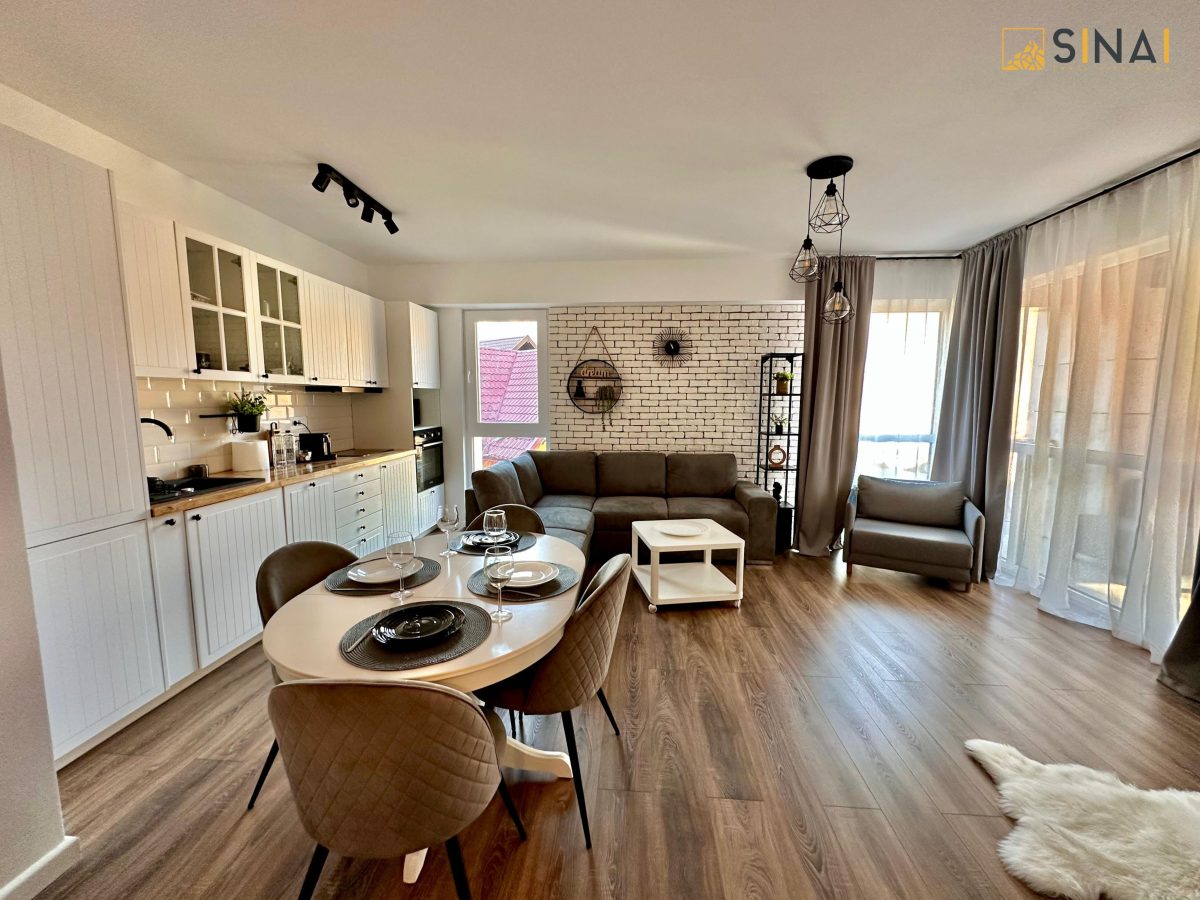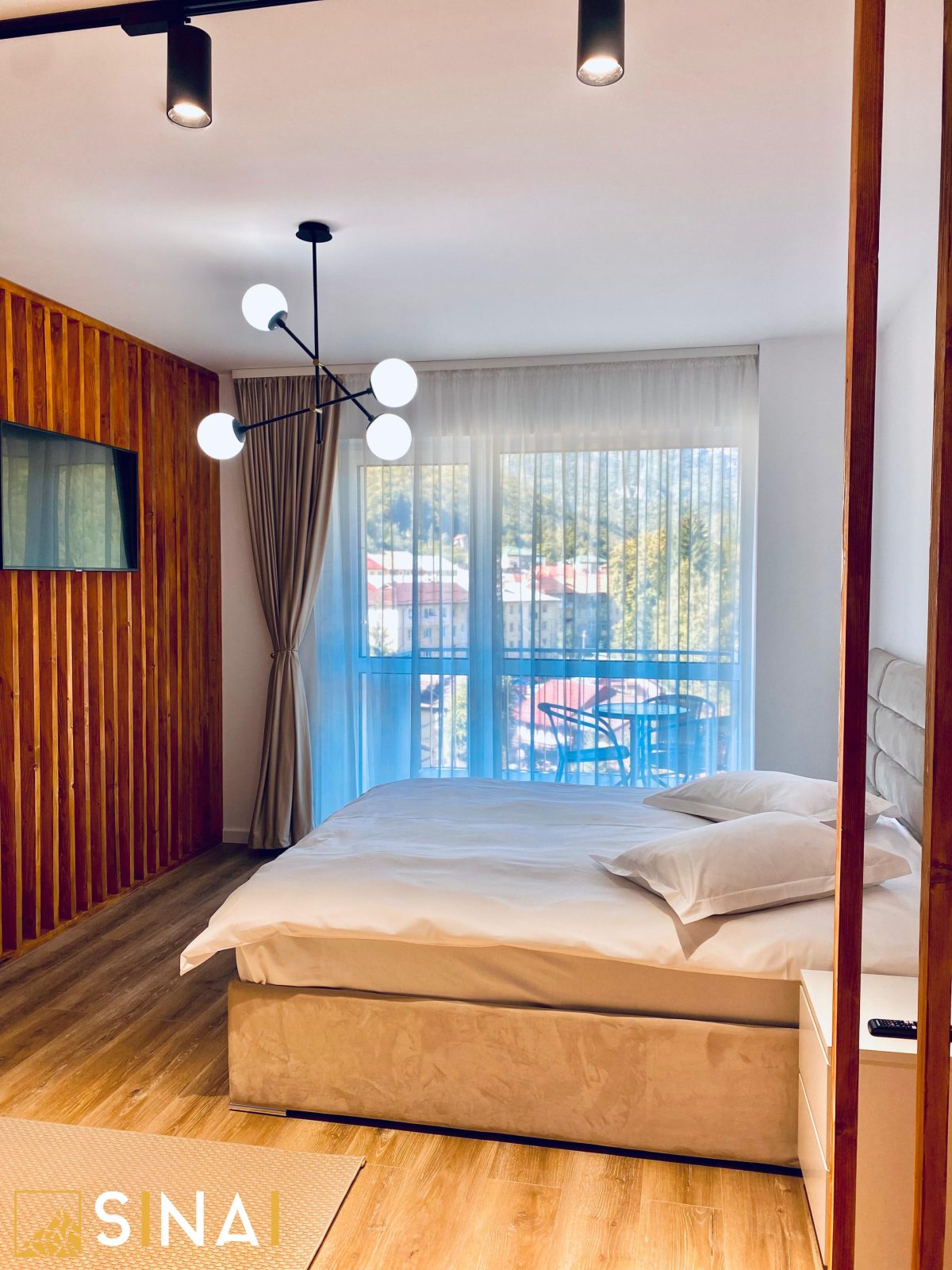 Apartamentul reprezinta un spațiu de cazare premium situat la etajul al VI-lea, proiectat pentru a oferi o experiență de neuitat. Cu o vedere panoramică spre munte și Crucea Caraiman, acest apartament este refugiul perfect pentru cei care caută confort și eleganță.