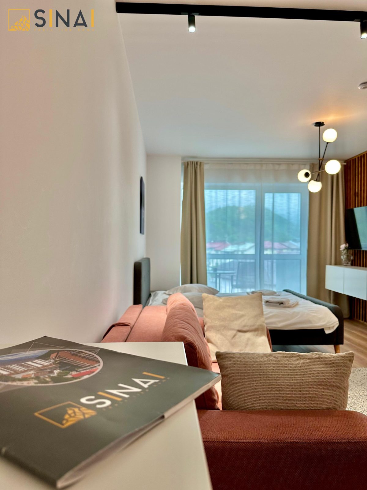 Studio-ul Gold 706- un spațiu ce va oferă confort și intimitate, situat la etajul al VII-lea, vă invită să vă delectați cu o panoramă spectaculoasă a munților și a pădurii înconjurătoare. Acest studio este minunat amenajat pentru a asigura o ședere relaxantă, având toate facilitățile necesare pentru a vă oferi sentimentul că sunteți acasă.