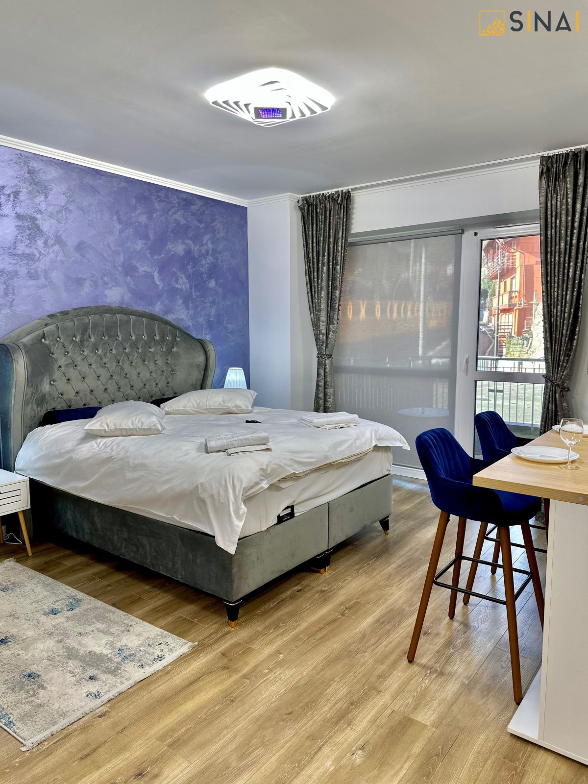 Studio-ul Platinum VIII – situat la etajul al VIII-lea, acest studio reprezintă o oază de liniște și confort, oferind o priveliște magnifică asupra munților și a pădurii. Cu un design elegant și facilități moderne, studio-ul este perfect echipat pentru a vă asigura o ședere relaxantă și luxoasă.