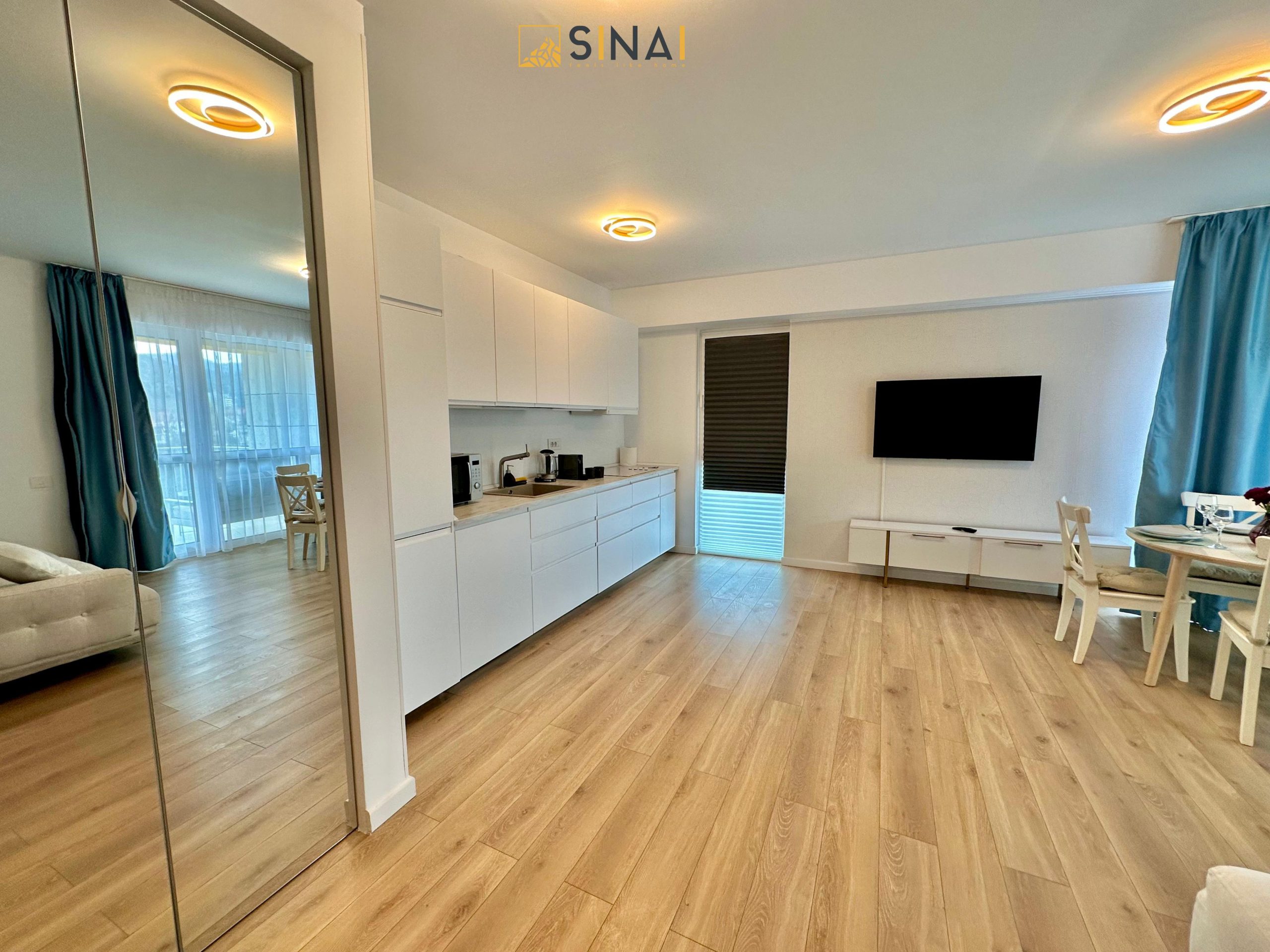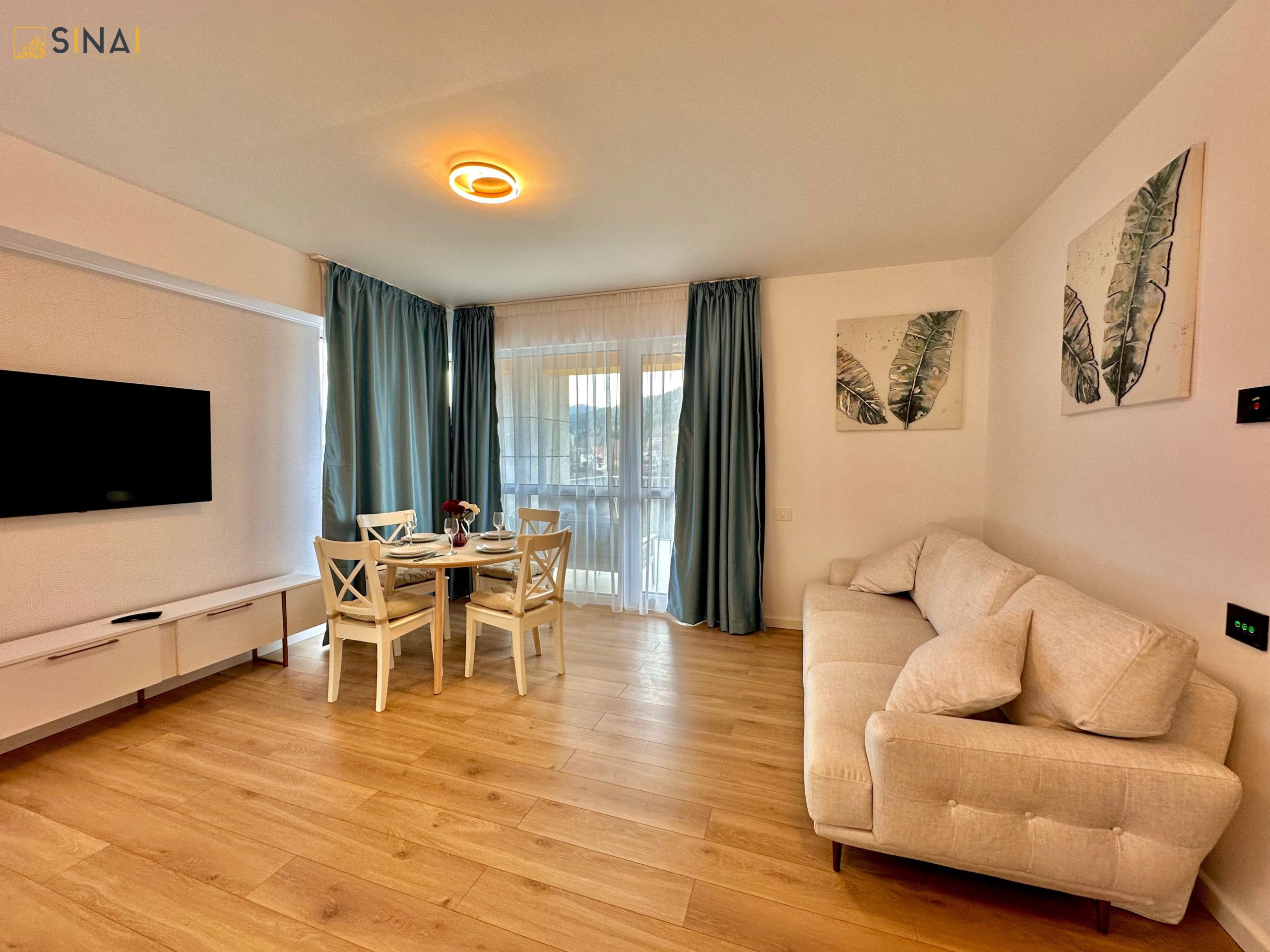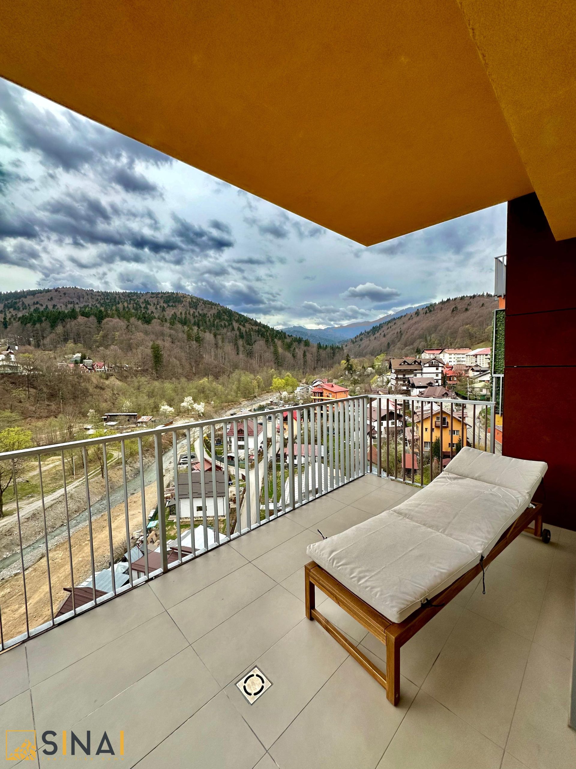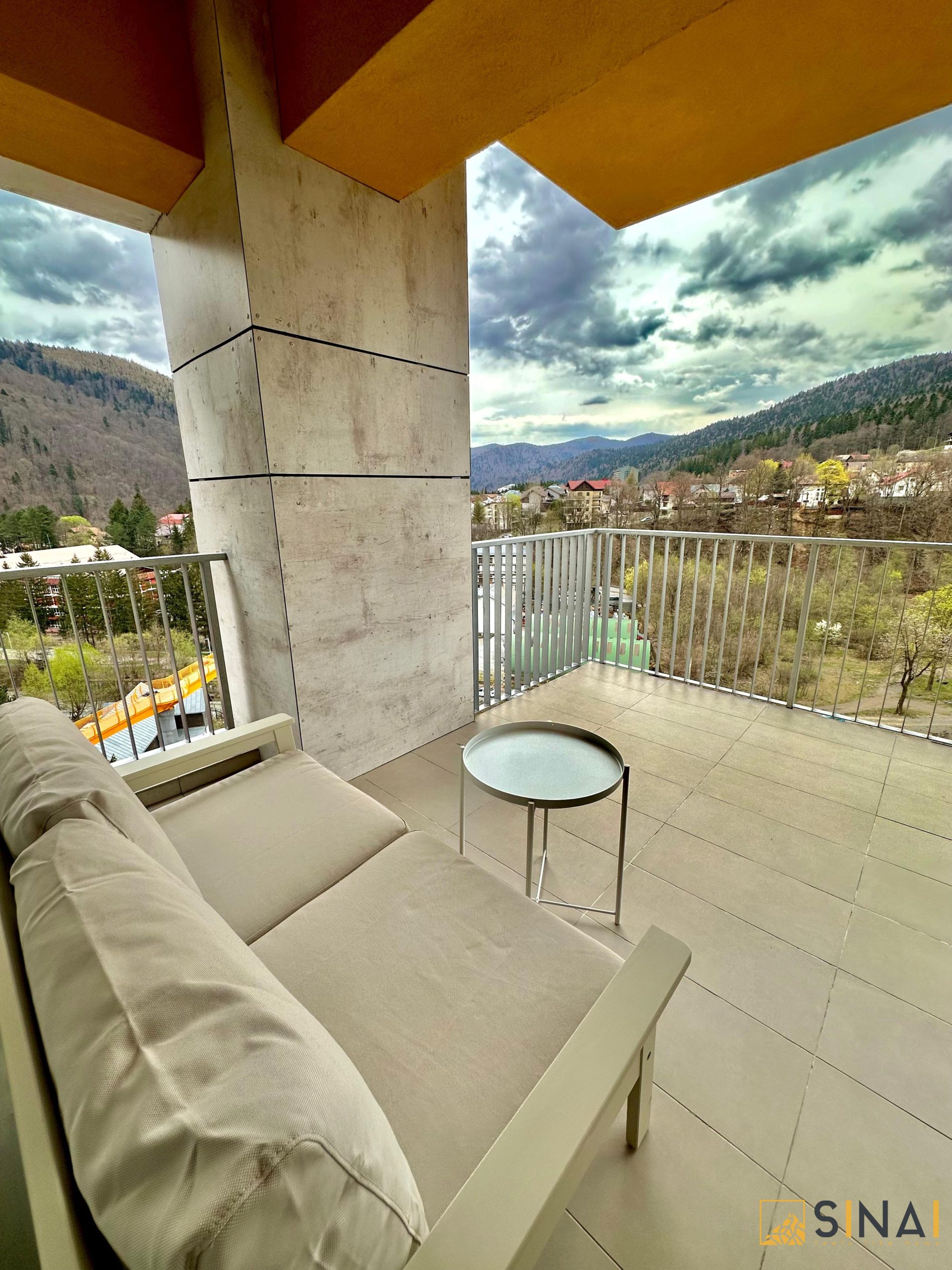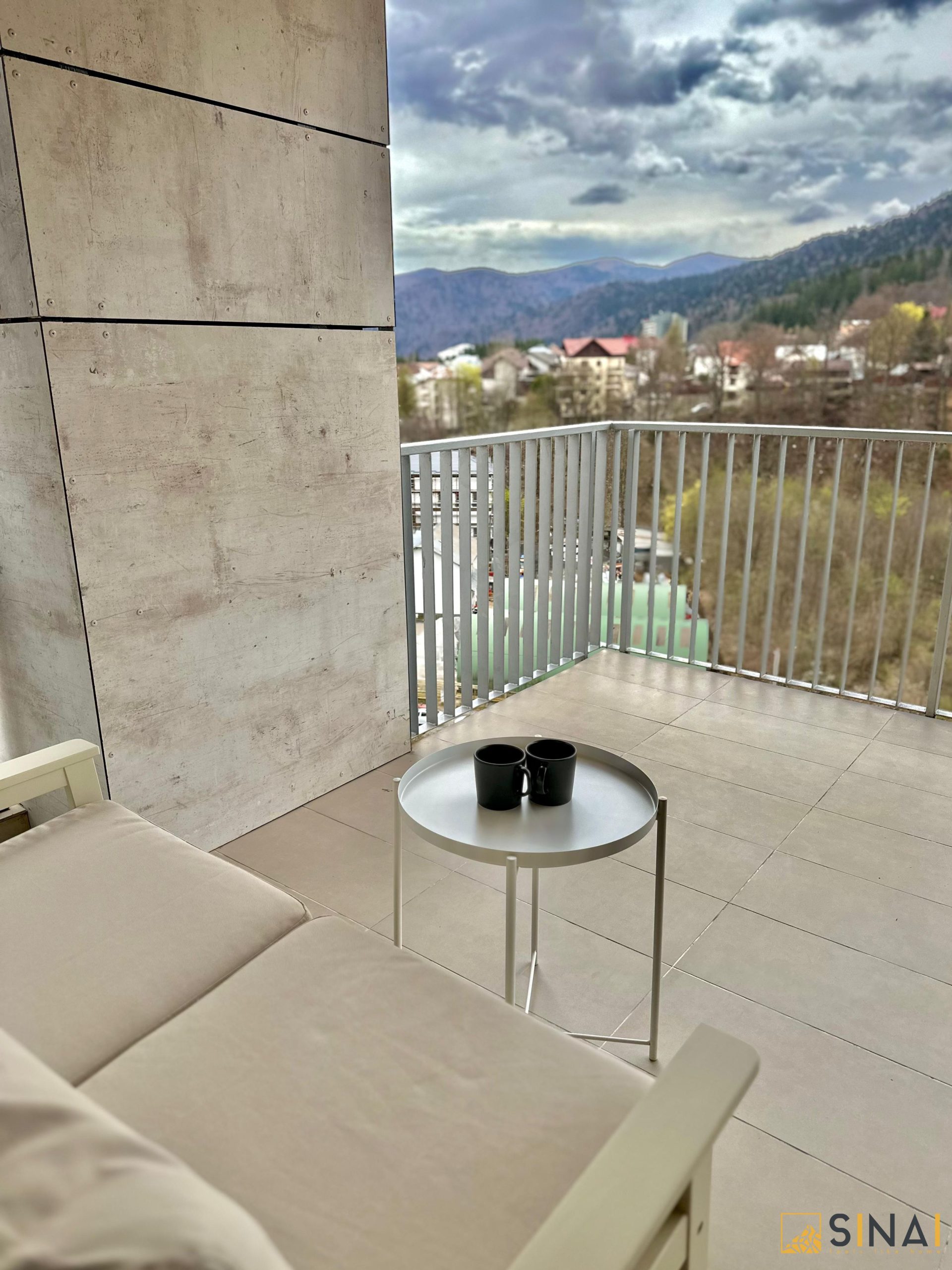 Apartamentul vă invită să experimentați confortul și stilul la înălțime, la etajul al VII-lea, unde priveliștea montană se dezvăluie în toată splendoarea ei. Cu o terasă generoasă care vă invită la momente de relaxare, acest apartament este o alegere excelentă pentru cei care caută un echilibru între aventură și odihnă.