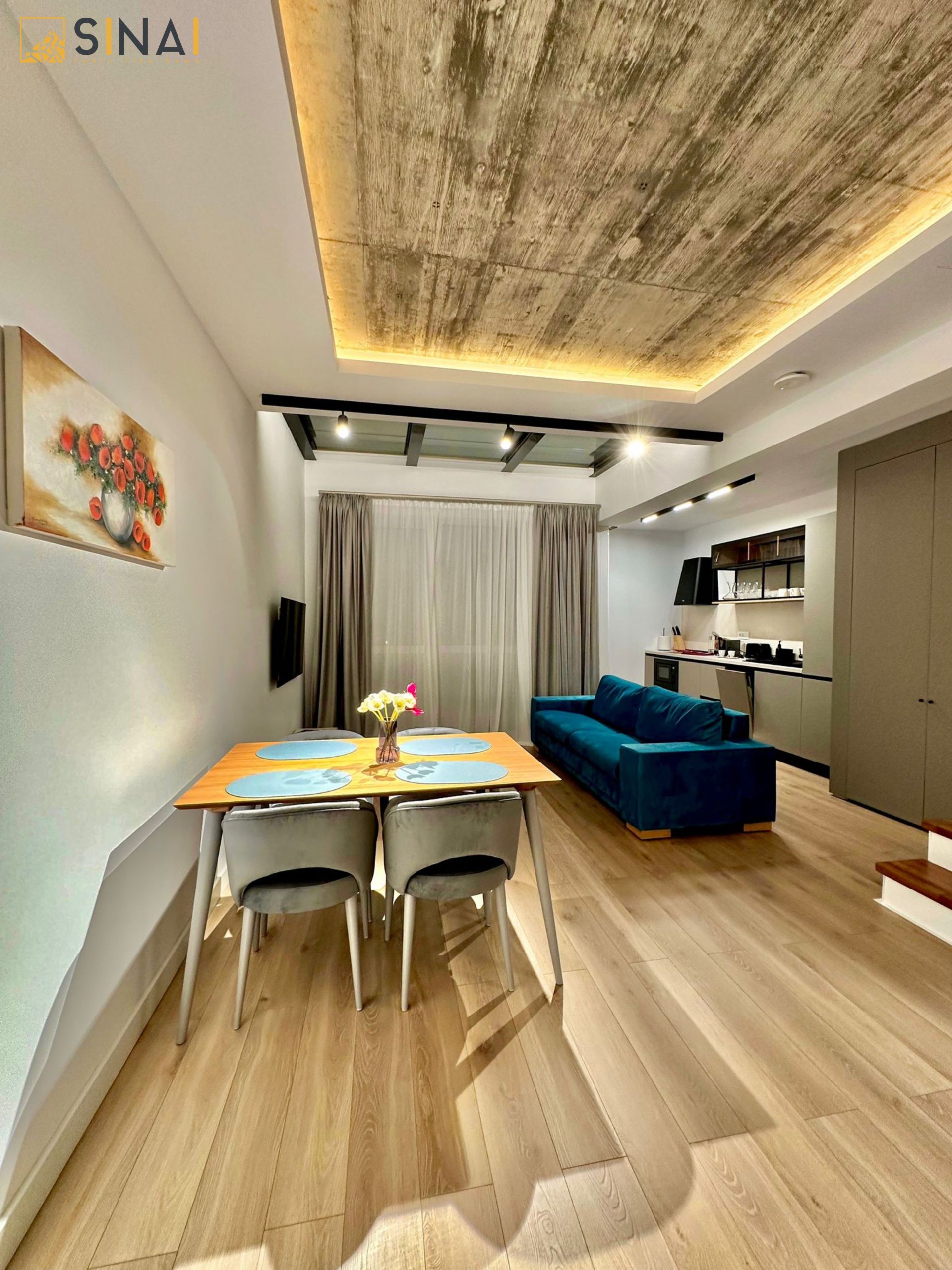 Situate la etajul al IX-lea, Penthouse Platinum este un colț de rai care vă așteaptă să descoperiți armonia perfectă între confort, stil și căldura unui cămin. Acest apartament cu două camere, proiectat cu grijă și atenție la detalii, este un sanctuar al liniștii și al bunului gust.