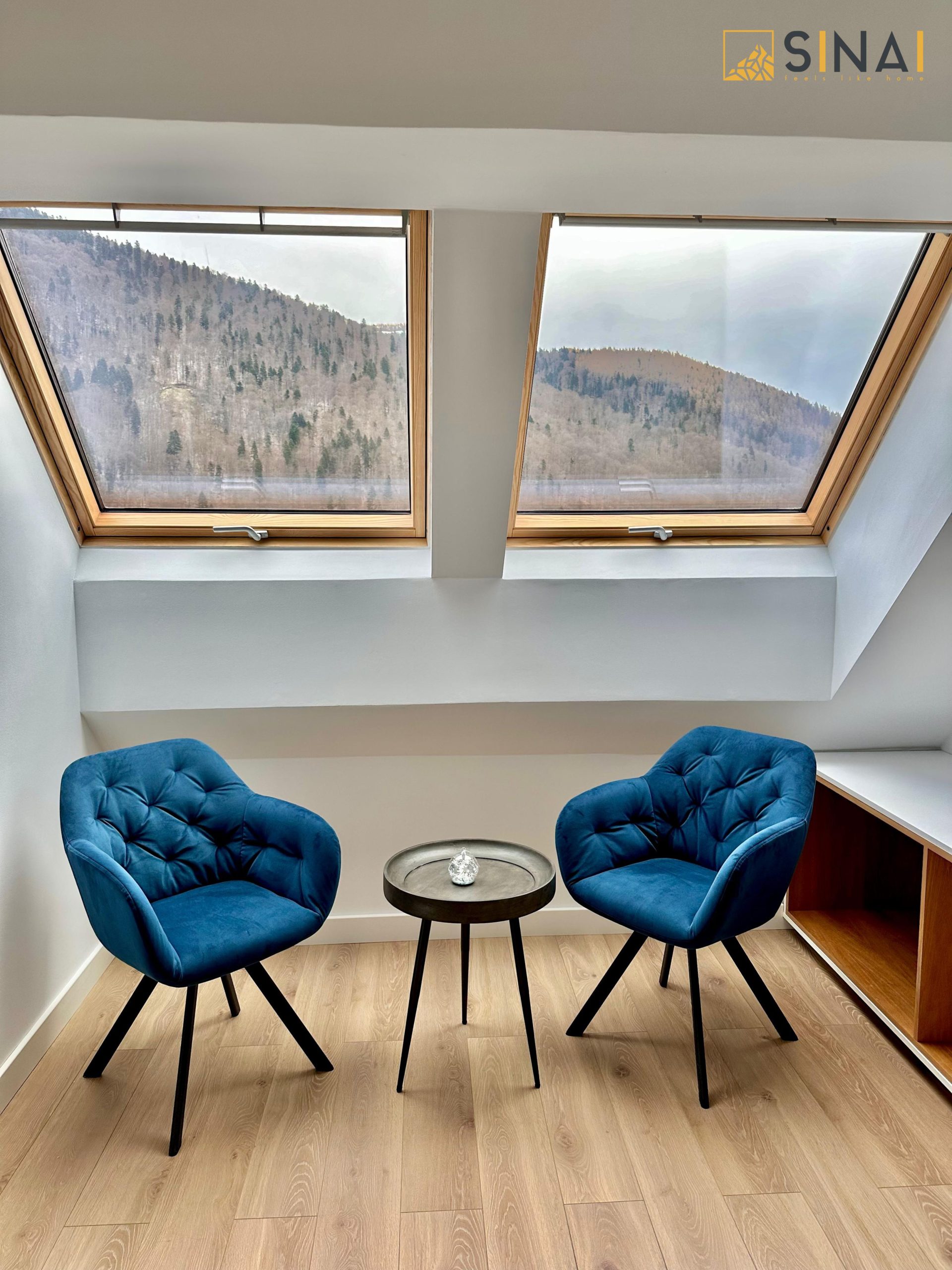 - Terasă: Un balcon spre cer, unde priveliștea montană vă îmbrățișează sufletul.