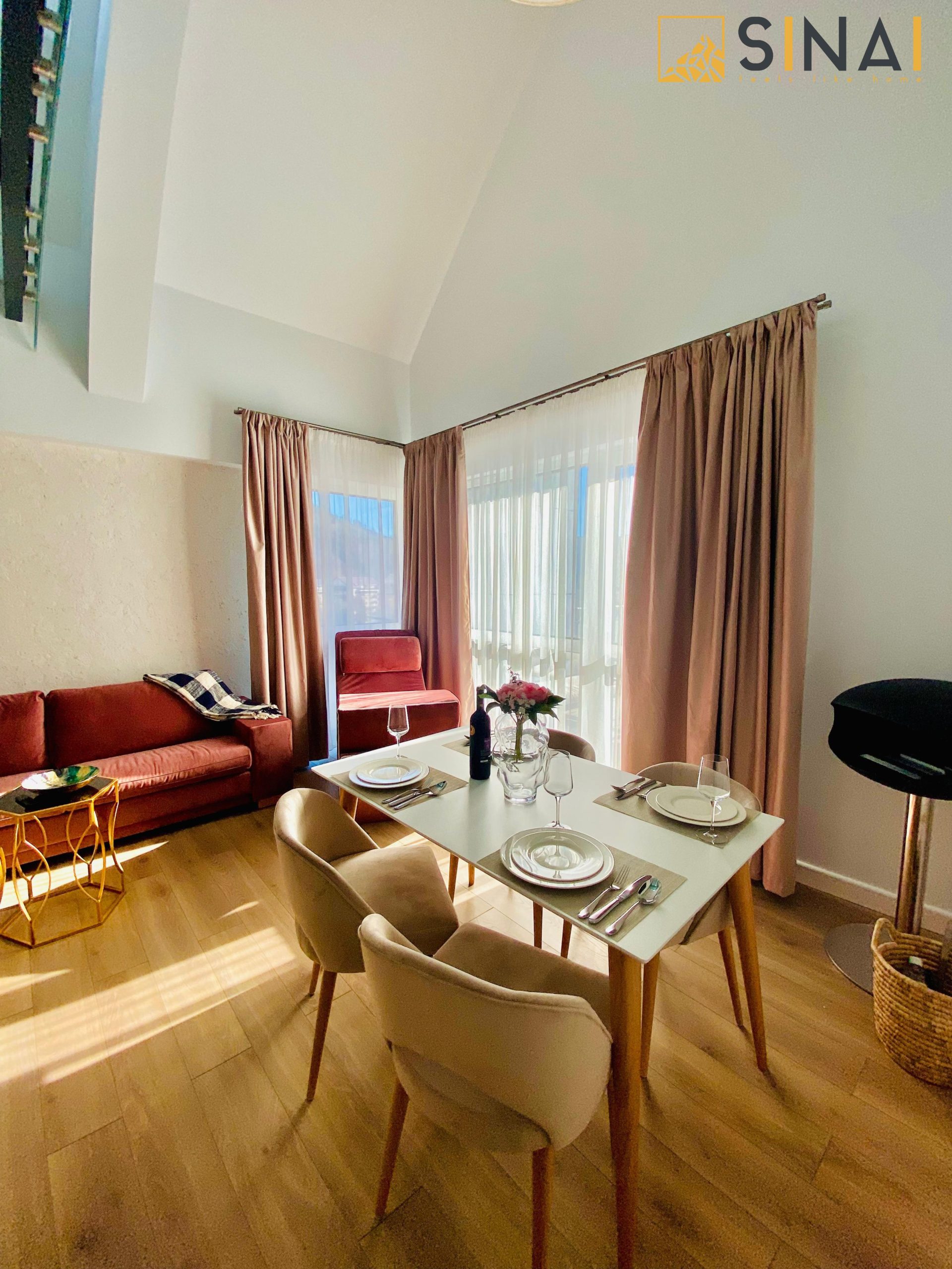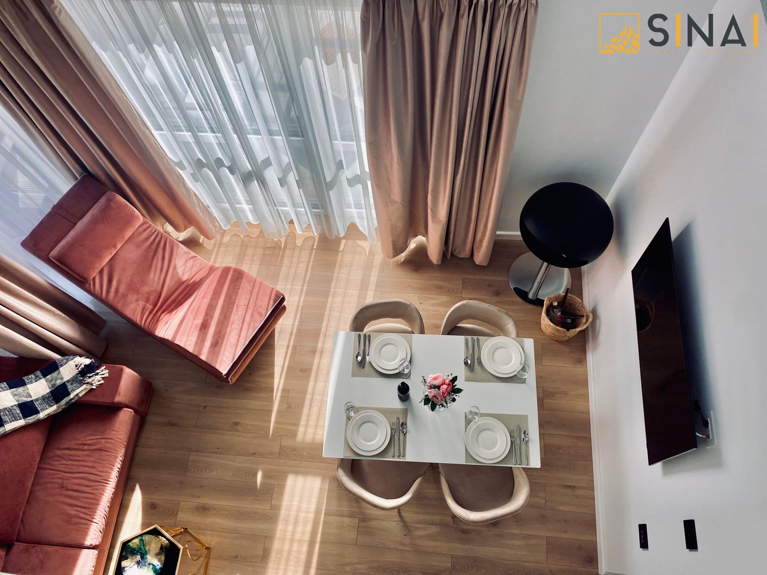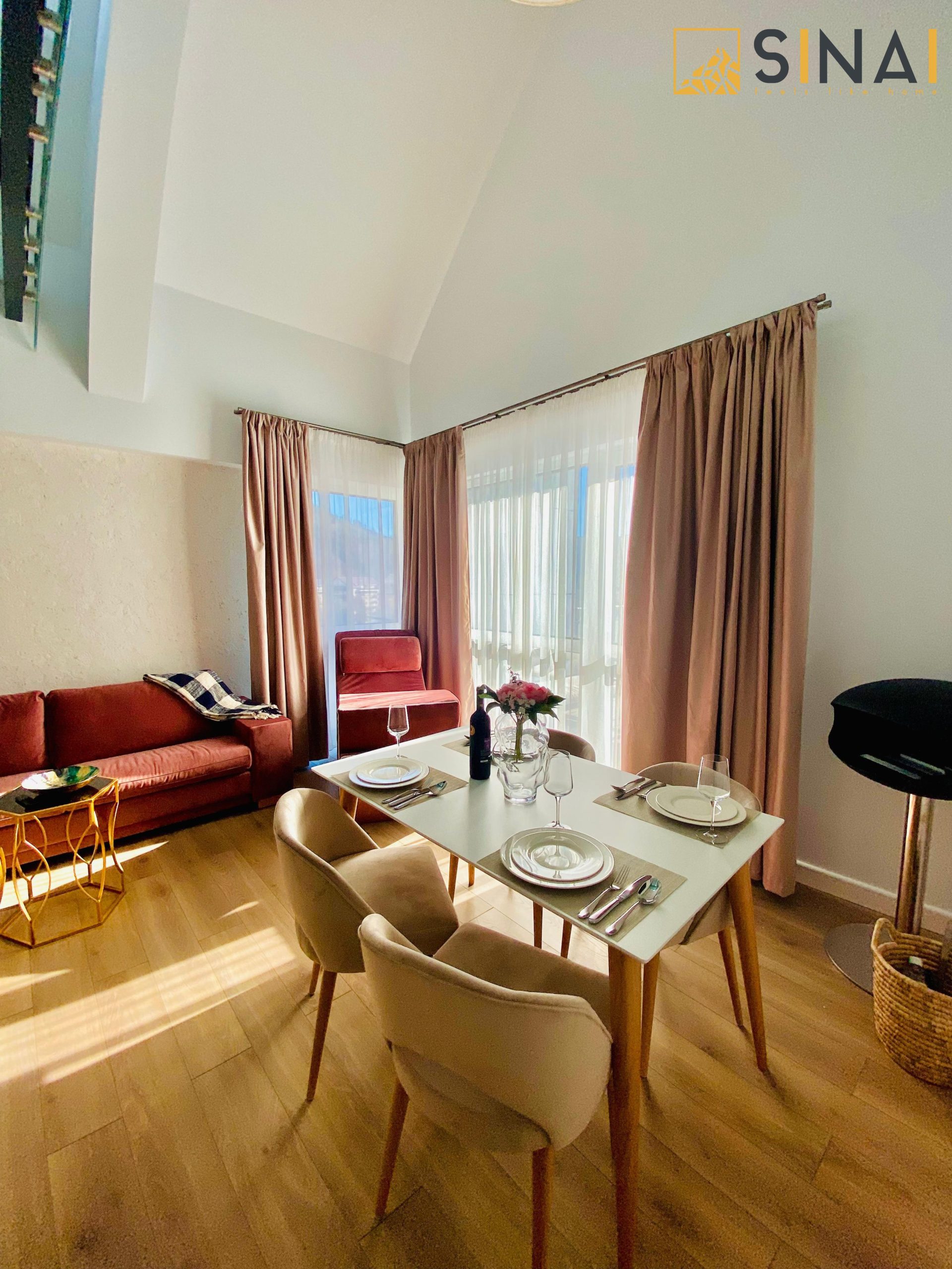 Penthouse-ul Platinum cu doua dormitoare este mai mult decât un loc de cazare; este un spațiu unde designul întâlnește funcționalitatea, unde fiecare moment petrecut aici devine parte dintr-o experiență deosebită la Exclusive Apartments by SINAI APH.