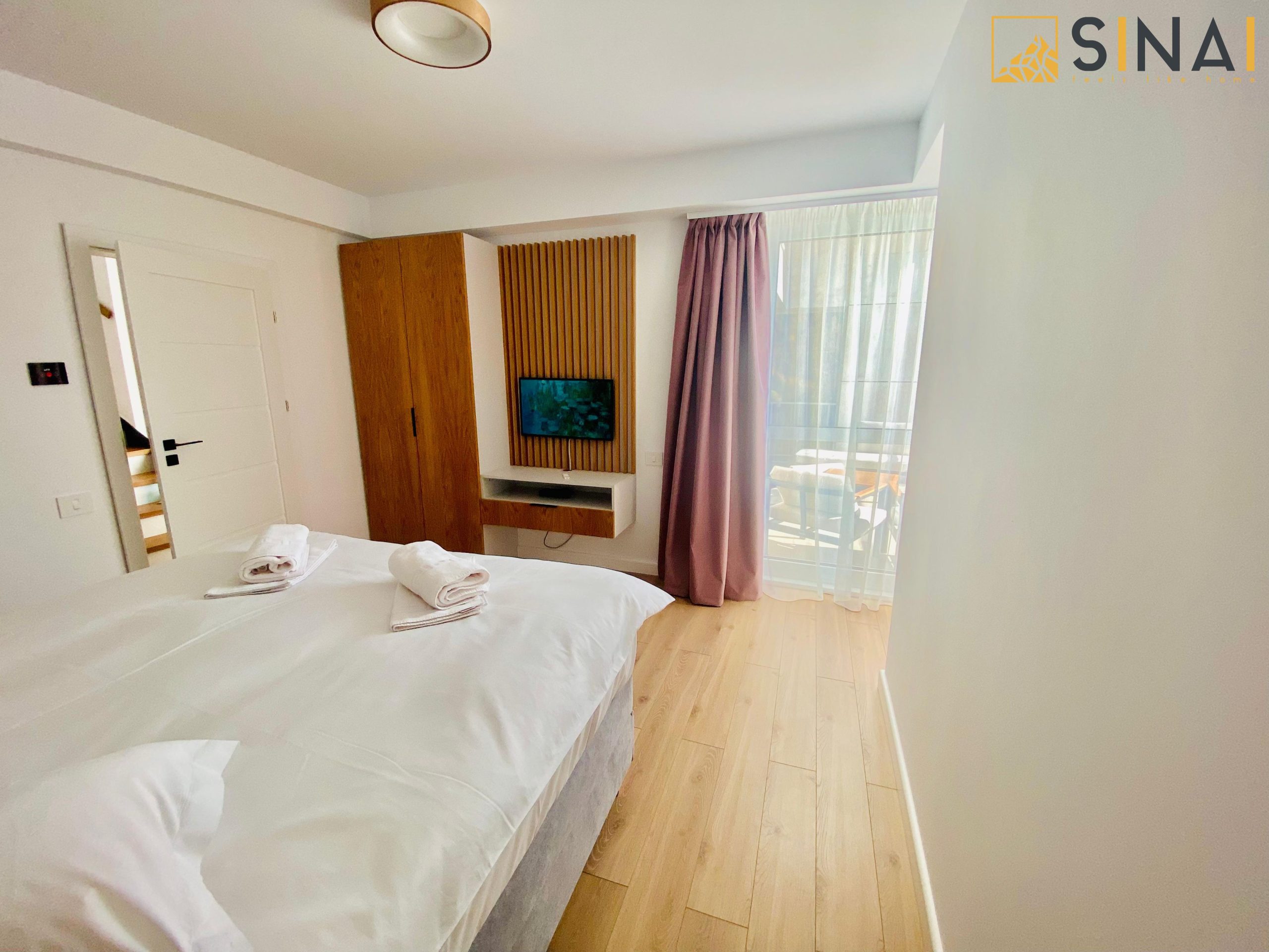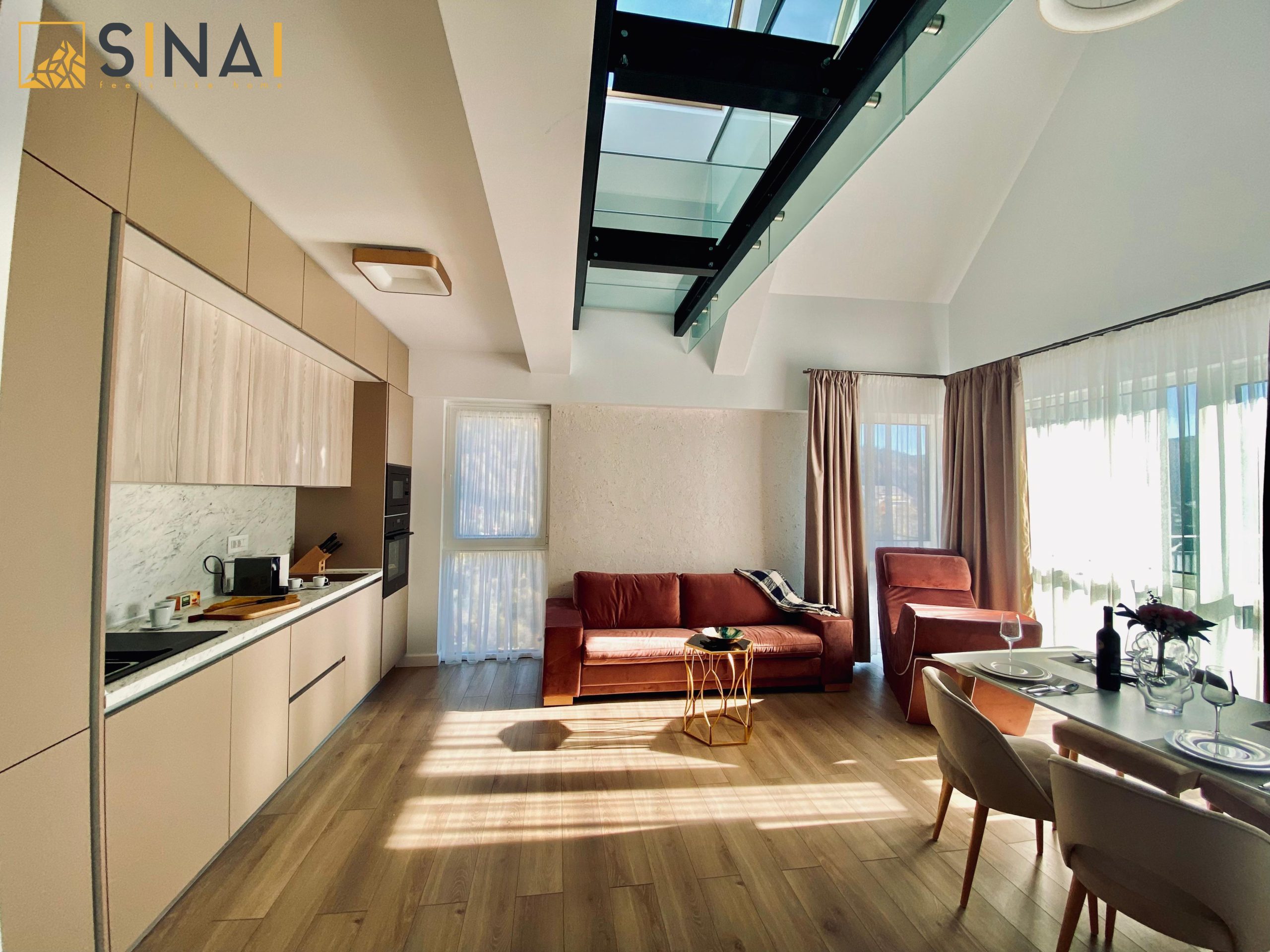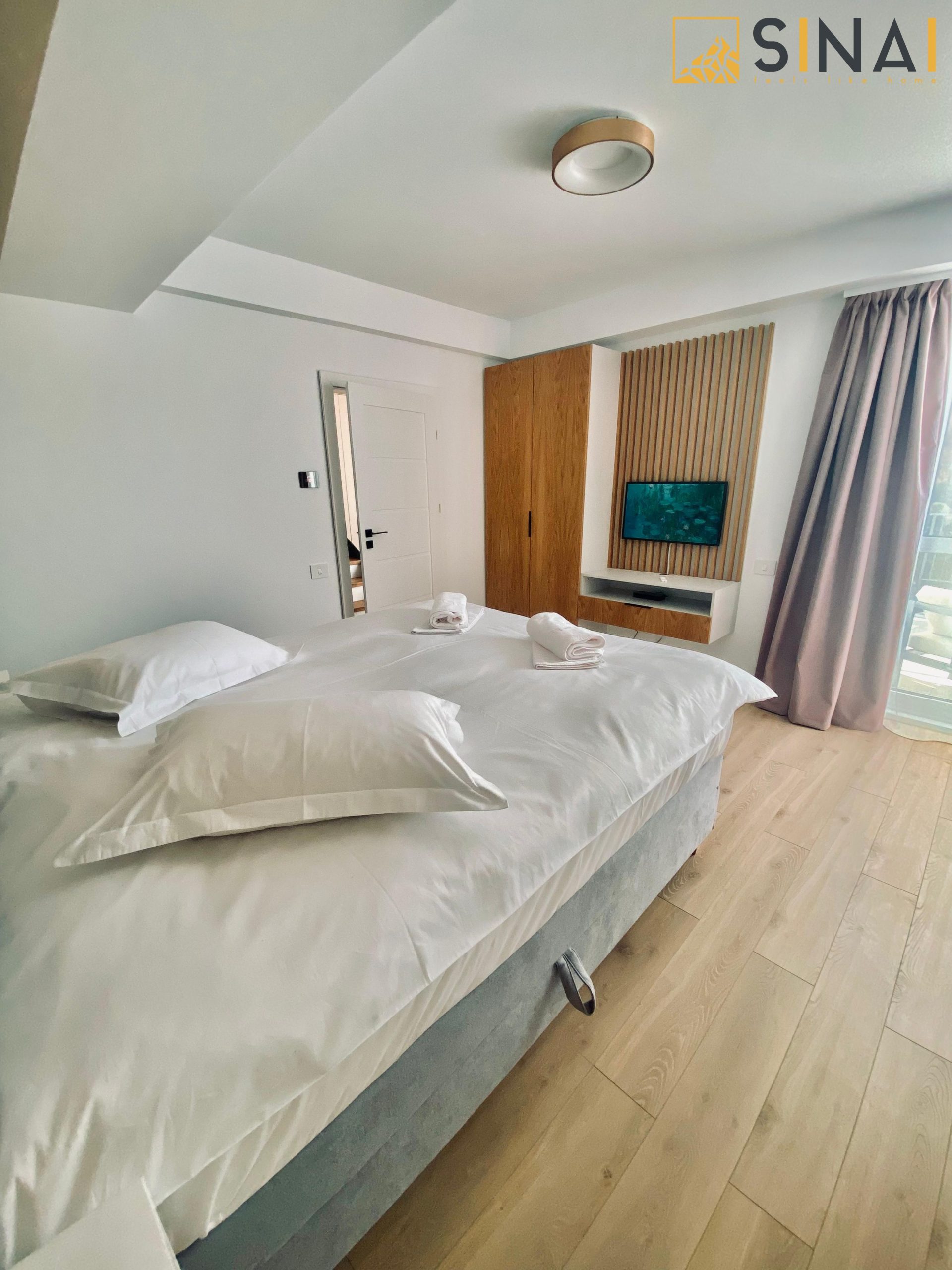 Penthouse-ul Platinum cu doua dormitoare este mai mult decât un loc de cazare; este un spațiu unde designul întâlnește funcționalitatea, unde fiecare moment petrecut aici devine parte dintr-o experiență deosebită la Exclusive Apartments by SINAI APH.