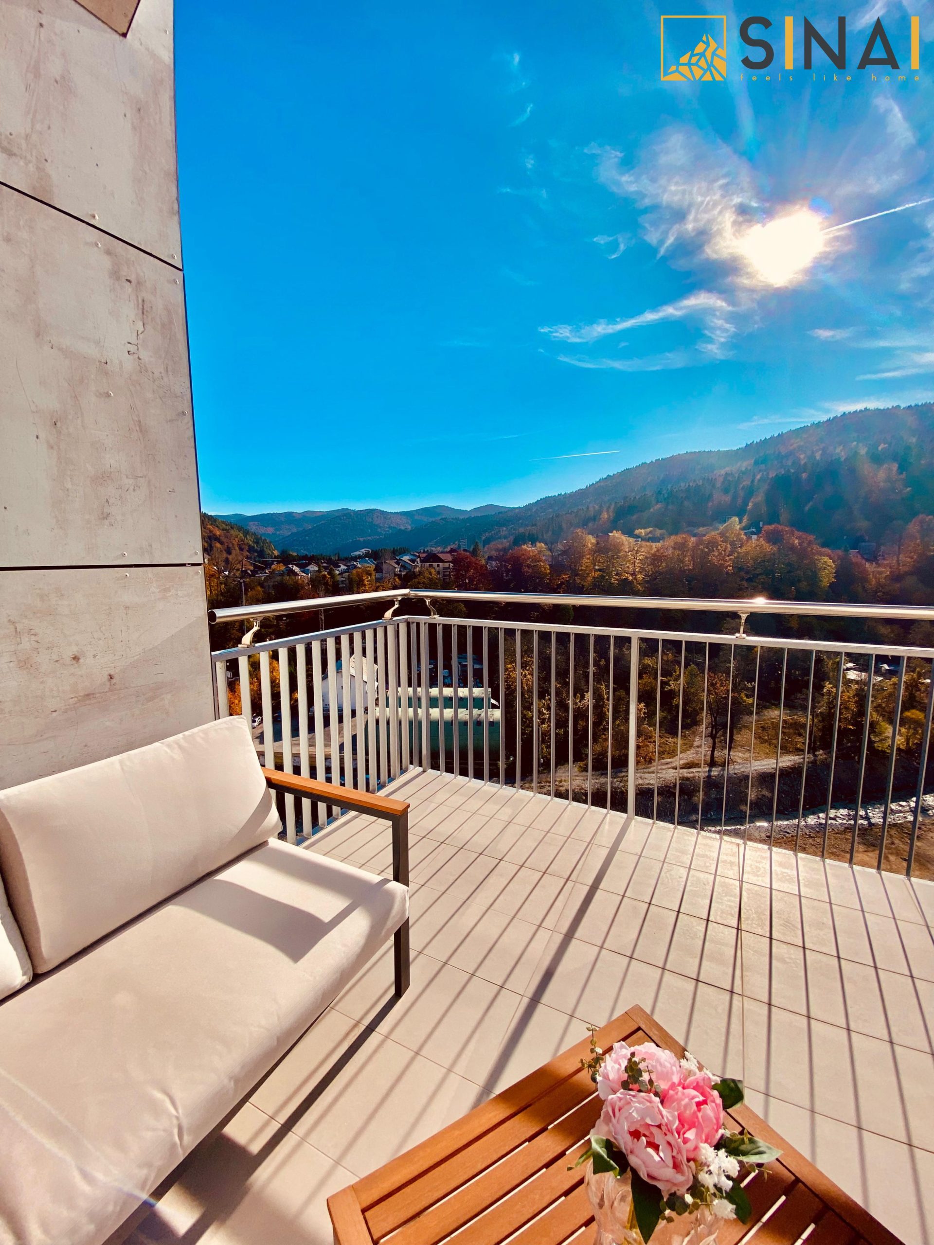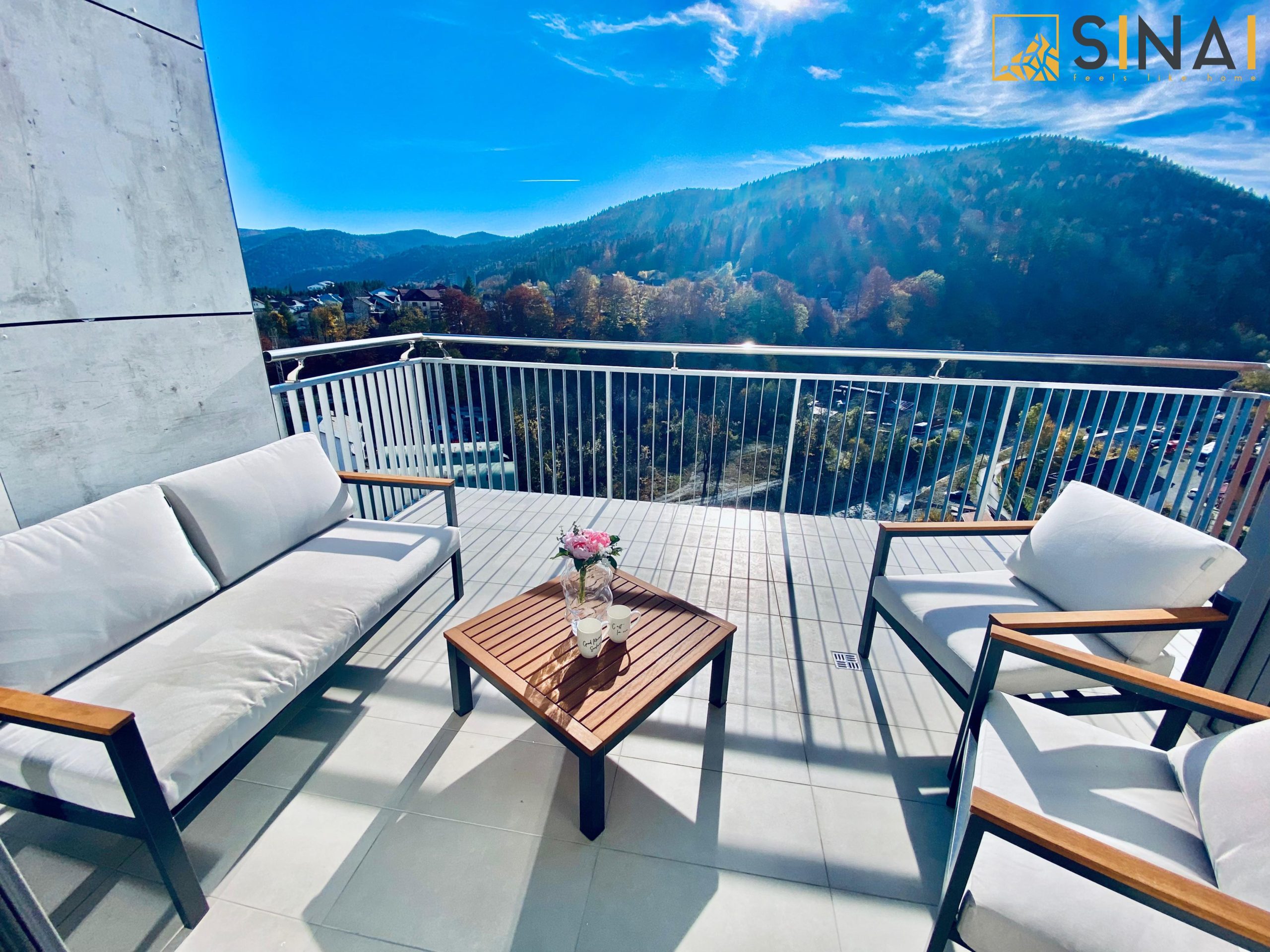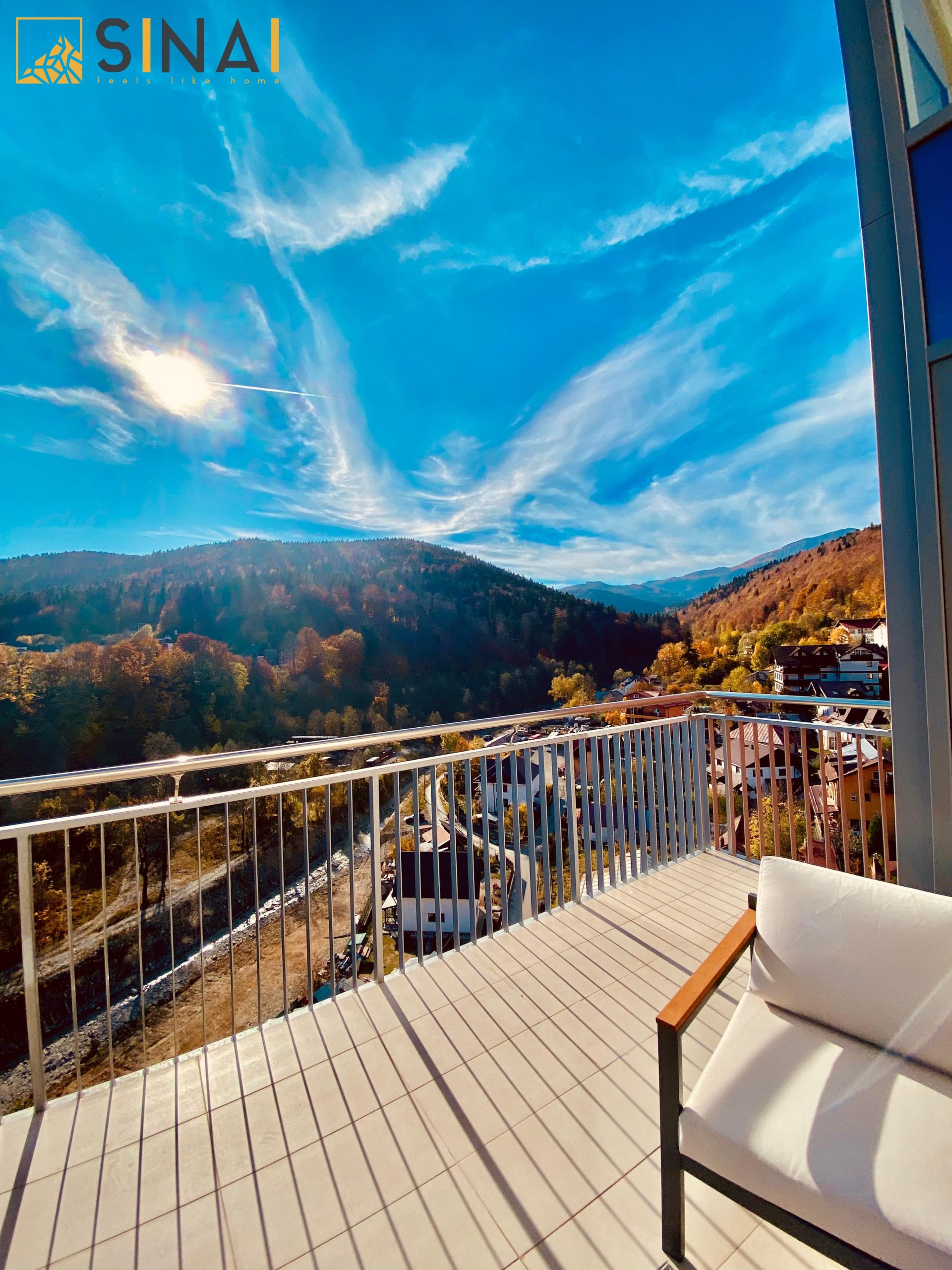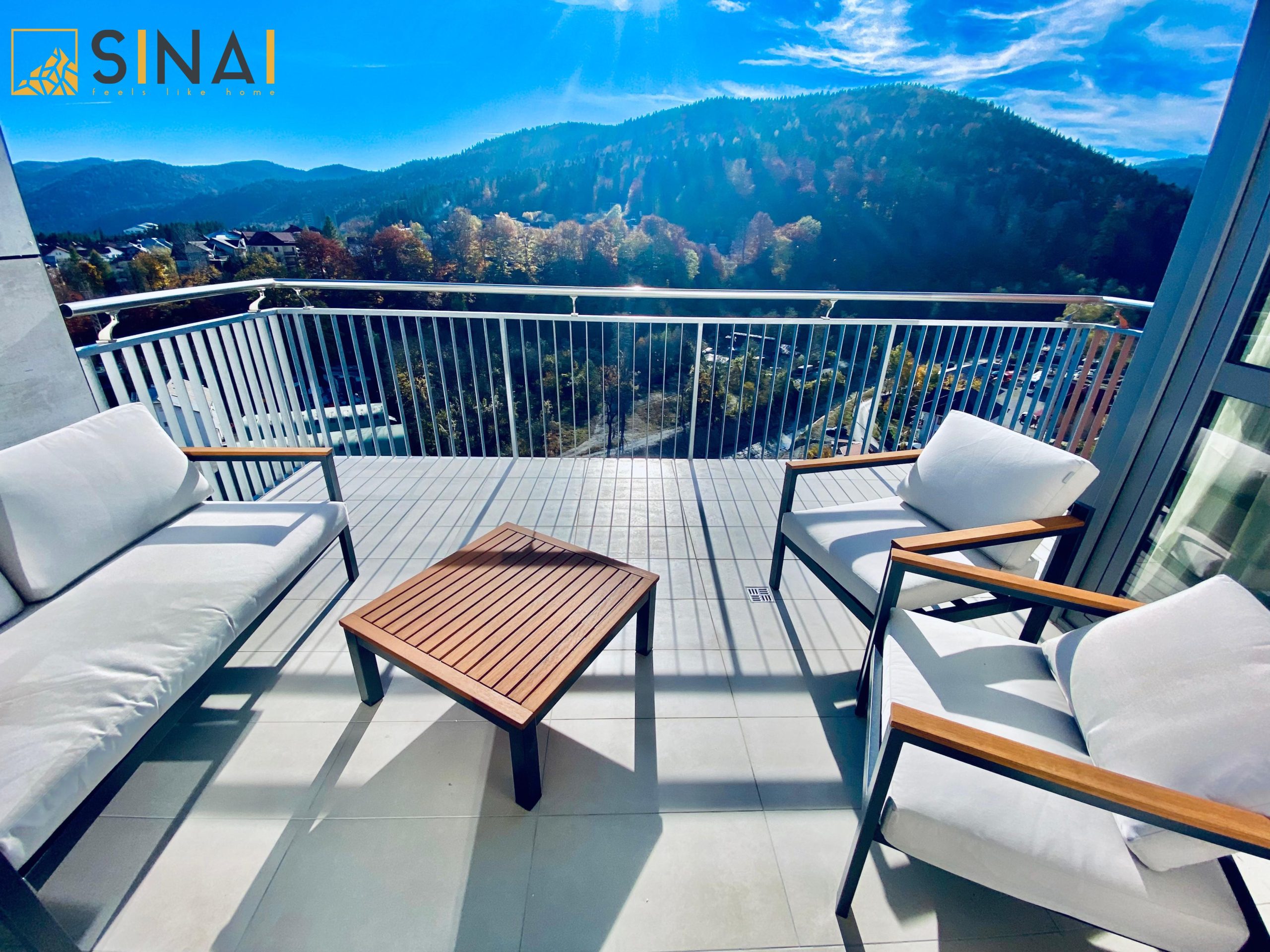 - Terasă: Un balcon al serenității, unde puteți respira aerul muntos și vă puteți pierde privirea în vastitatea peisajului.