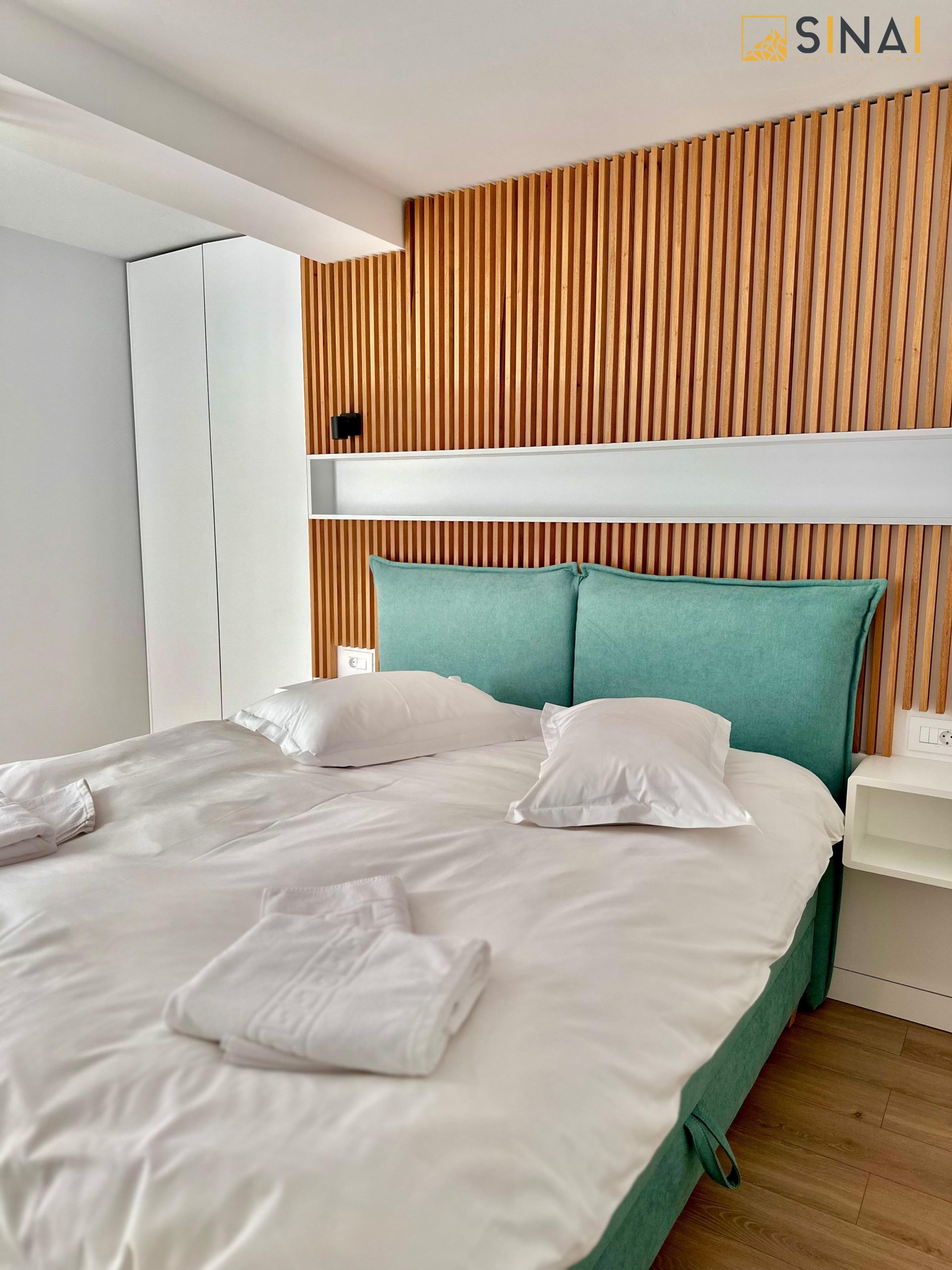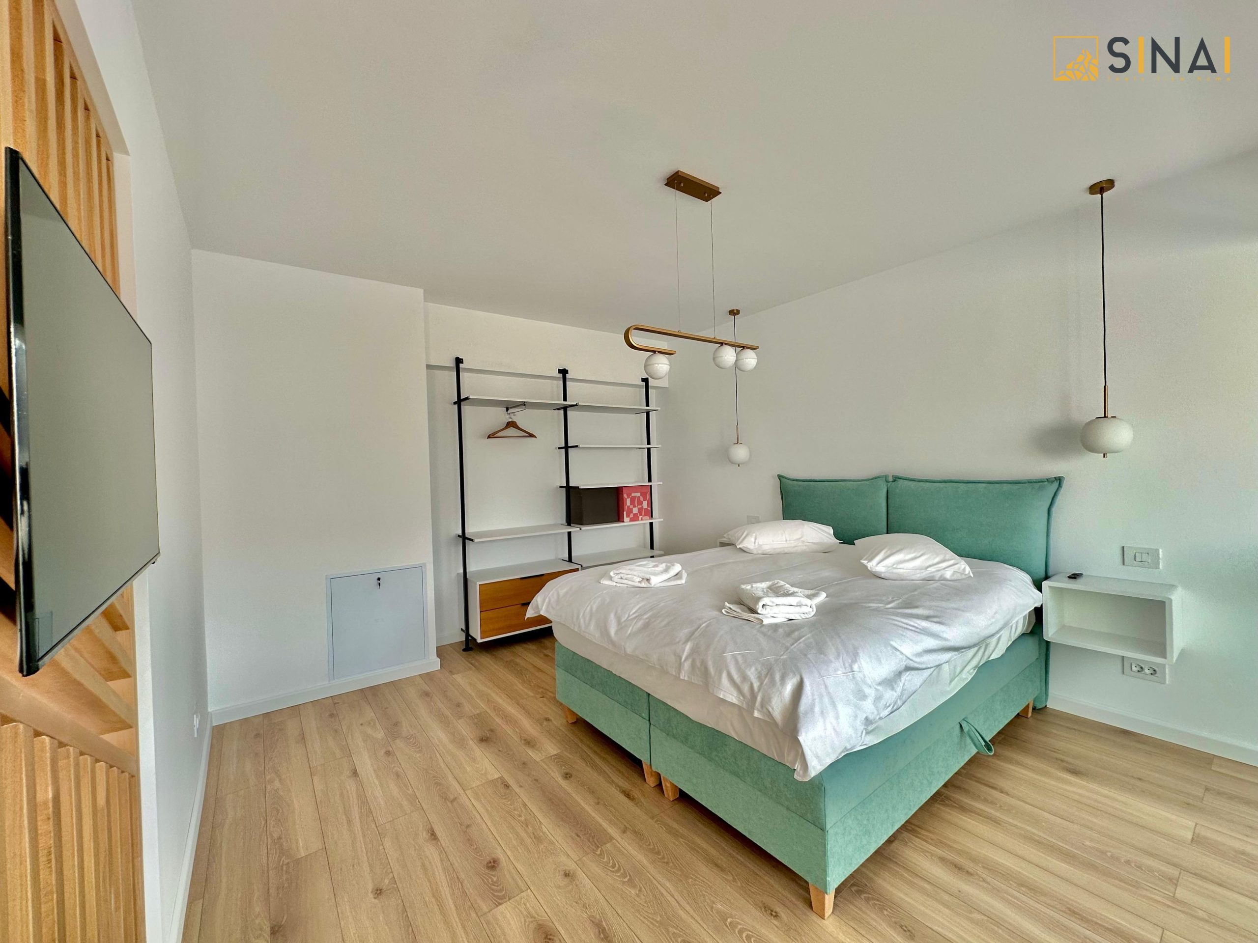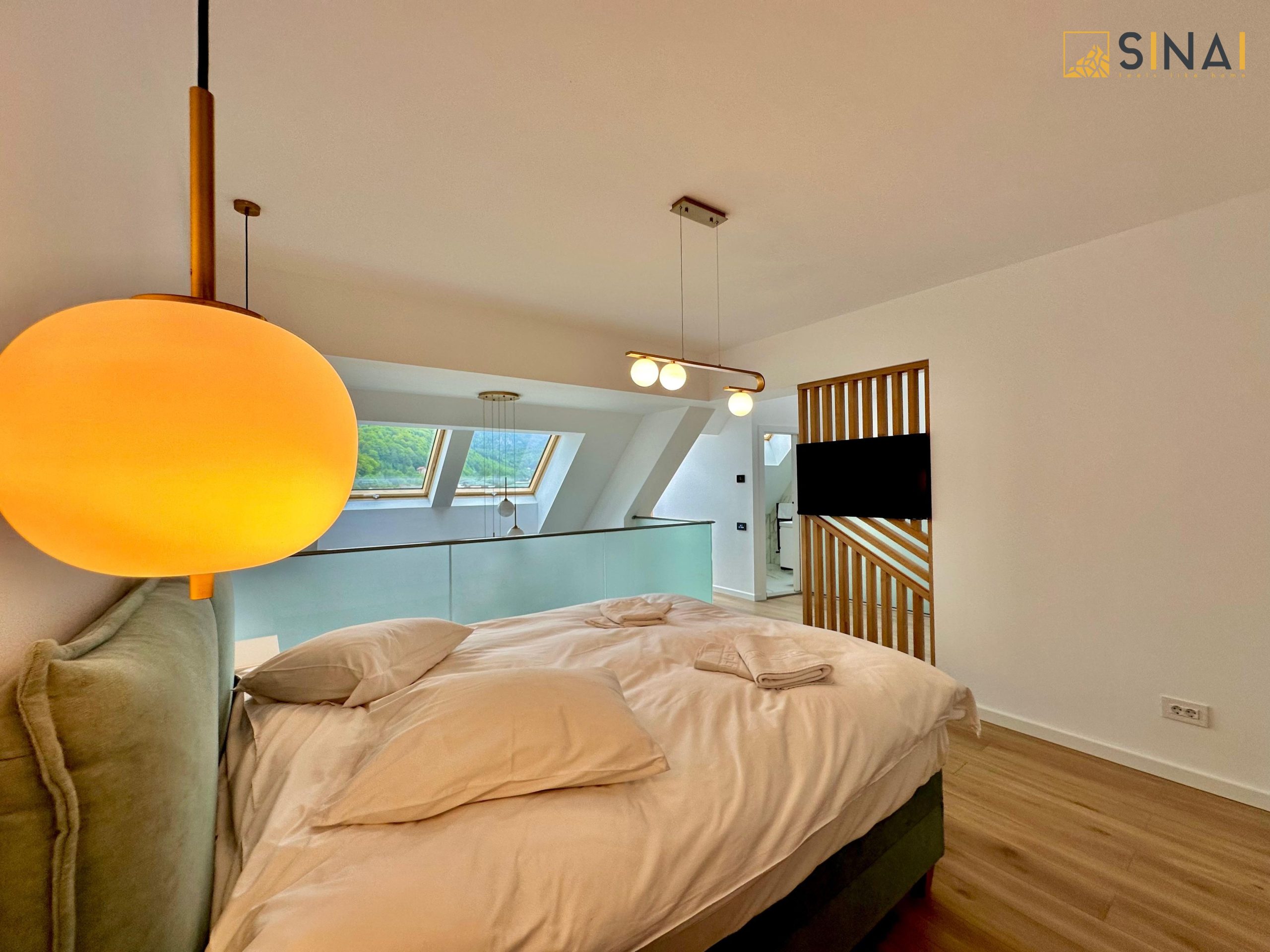 Penthouse-ul Platinum cu doua dormitoare este mai mult decât un loc de cazare; este un spațiu unde designul întâlnește funcționalitatea, unde fiecare moment petrecut aici devine parte dintr-o experiență deosebită la Exclusive Apartments by SINAI APH.