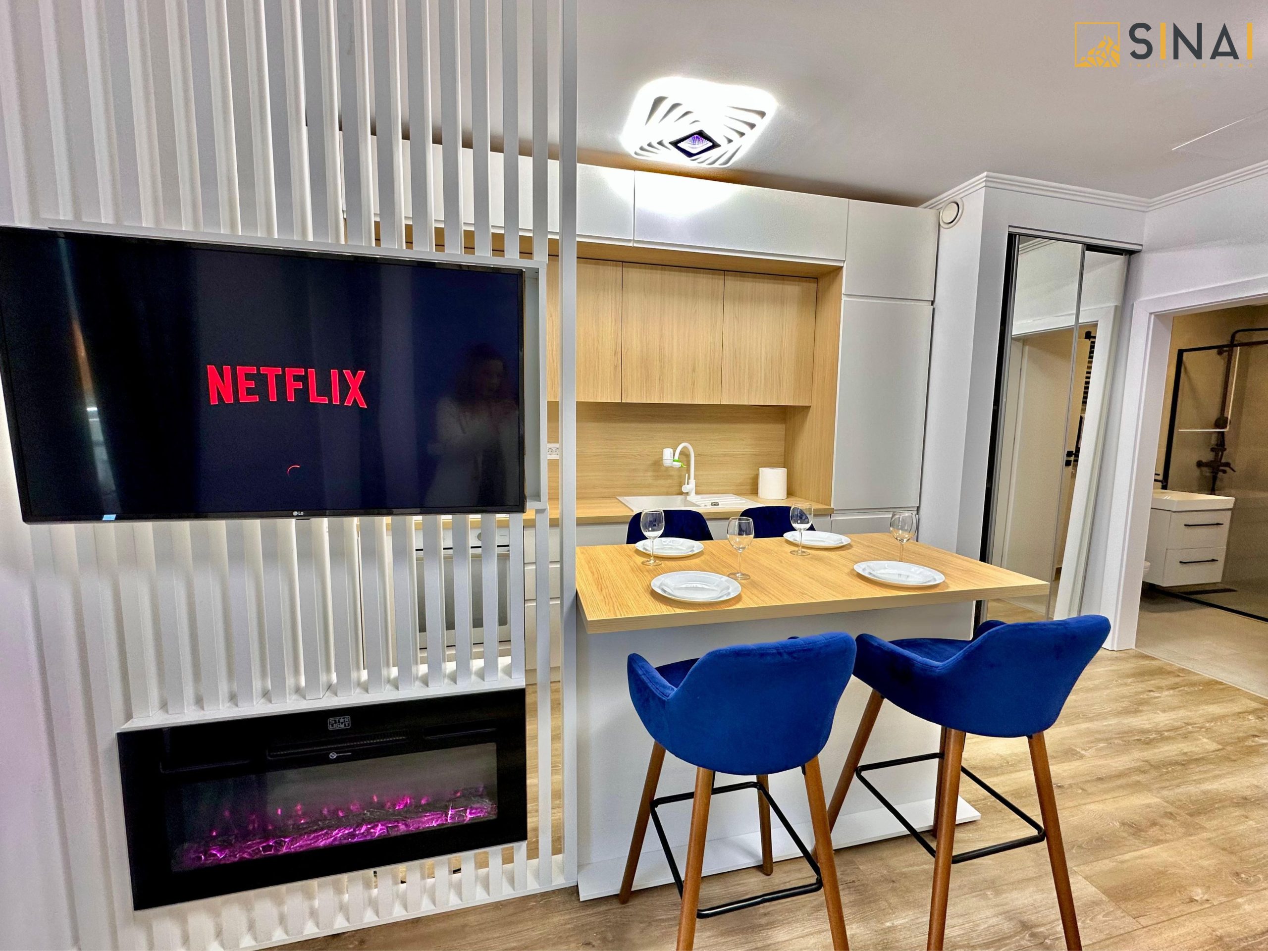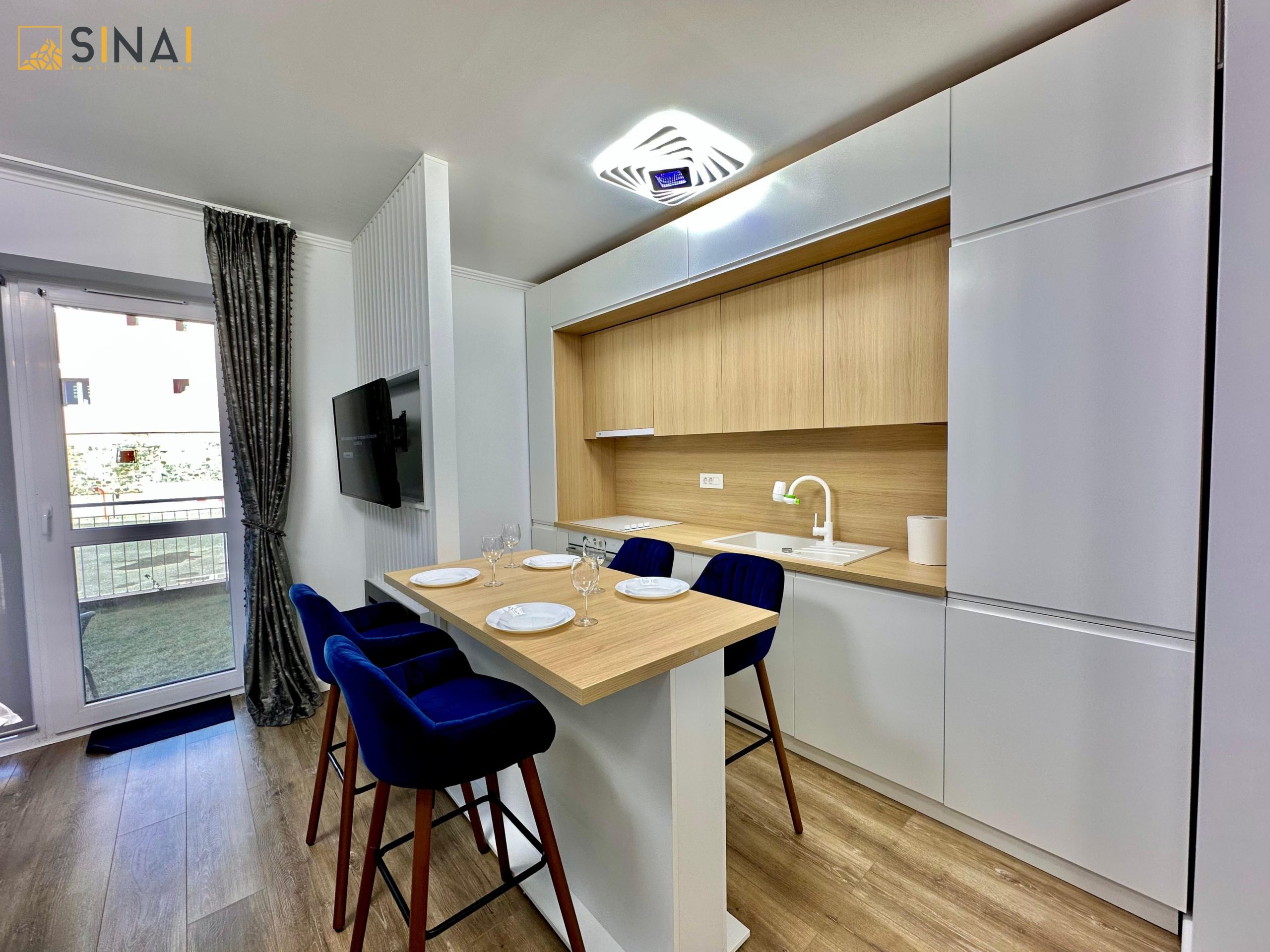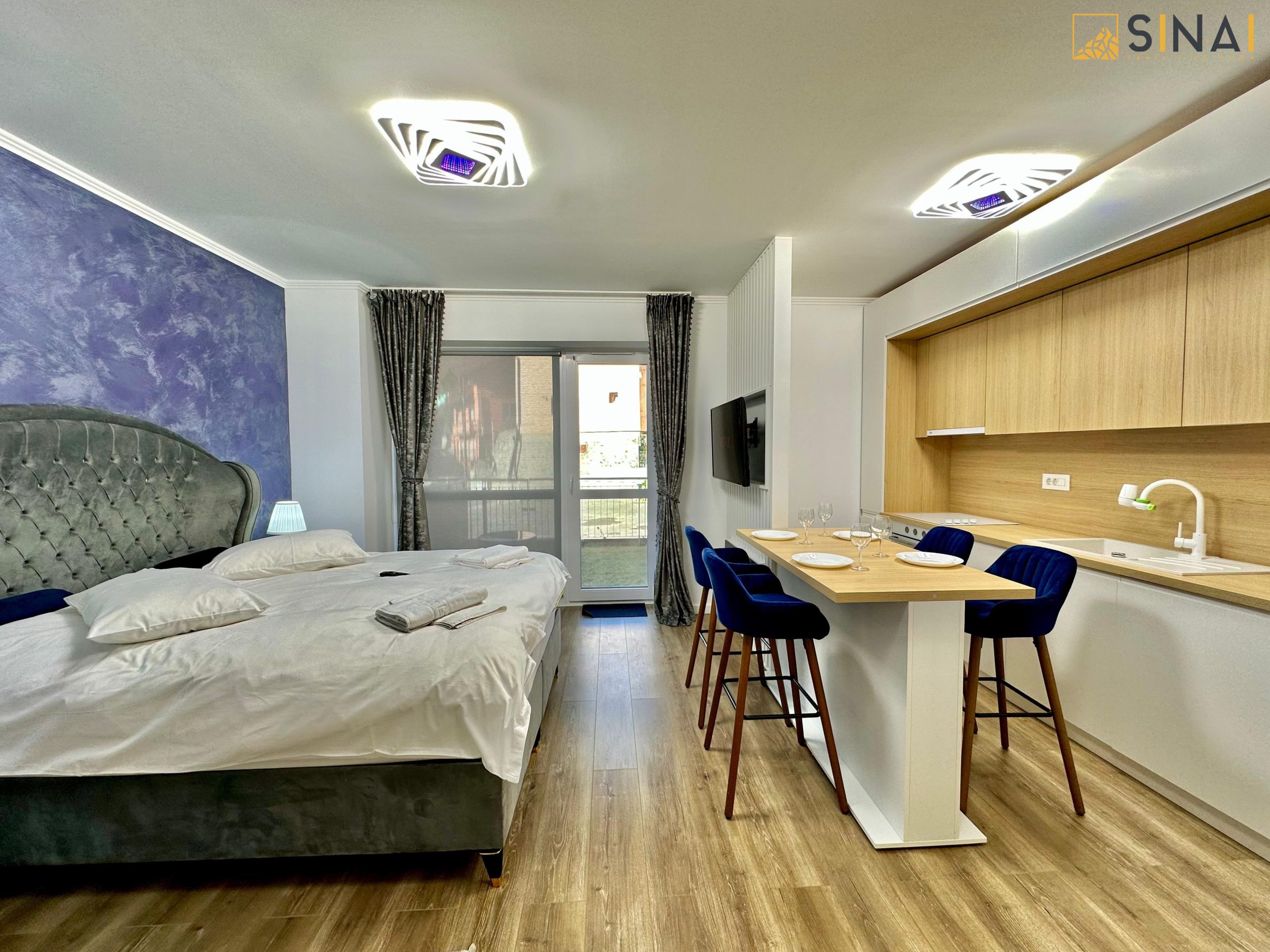 Studio-ul Gold 006 este un refugiu confortabil, situat la parter, oferind o terasă cochetă. Acest studio este perfect echipat pentru a vă oferi o ședere relaxantă, cu toate comoditățile necesare pentru a vă simți ca acasă.