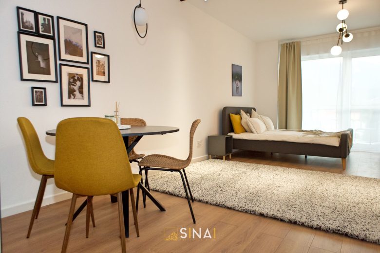 Studio-ul Gold 006 este un refugiu confortabil, situat la parter, oferind o terasă cochetă. Acest studio este perfect echipat pentru a vă oferi o ședere relaxantă, cu toate comoditățile necesare pentru a vă simți ca acasă.